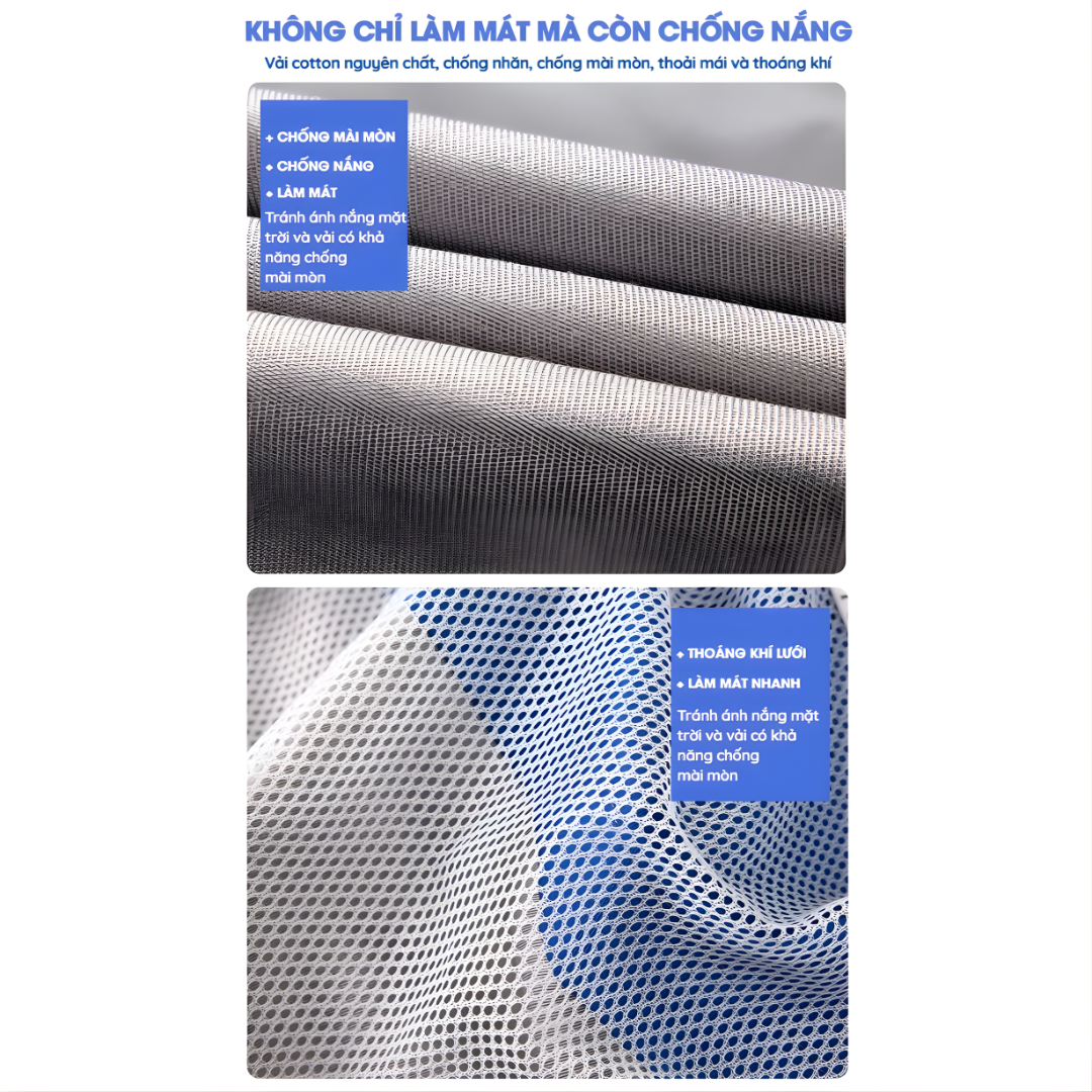 - Chất liệu: Vải chống nắng, thoáng khí cao cấp
