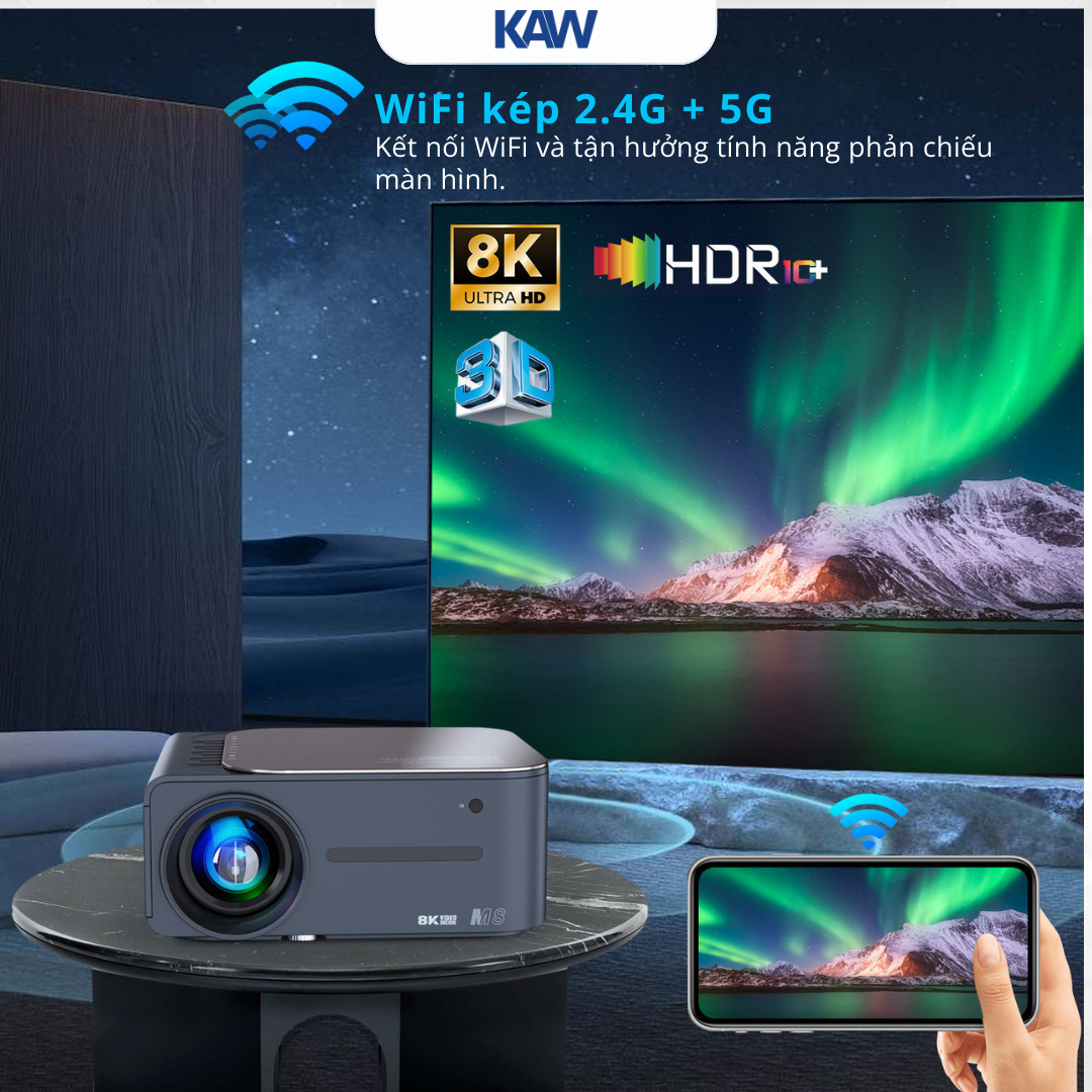 Máy Chiếu KAW MC005 – Full HD 1080P, 400 ANSI, Android 9, WiFi 2.4G/5G, Hỗ Trợ 4K