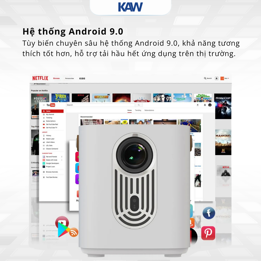 Máy Chiếu Mini KAW Budplus S3 1080P – 380 ANSI, Android 9.0