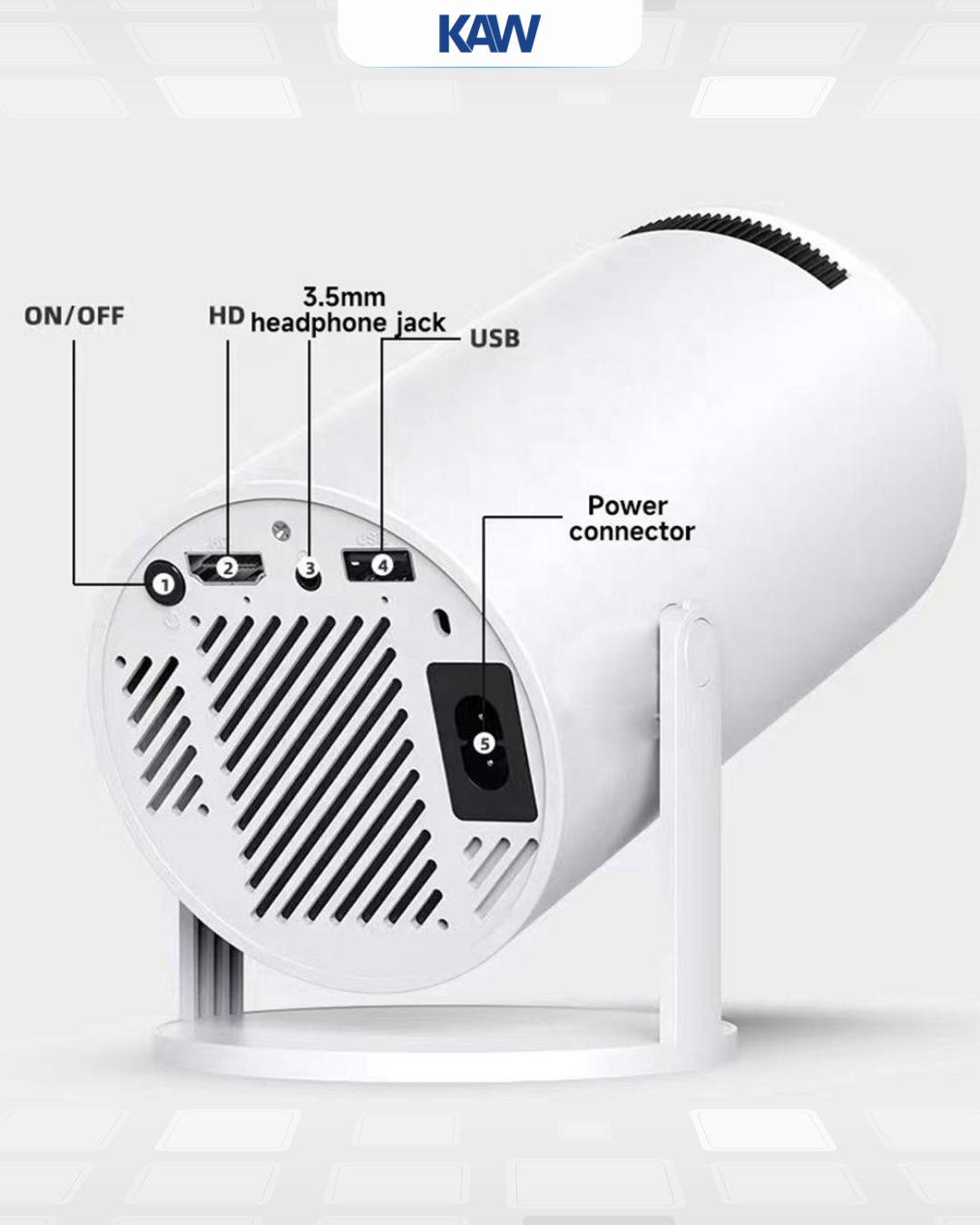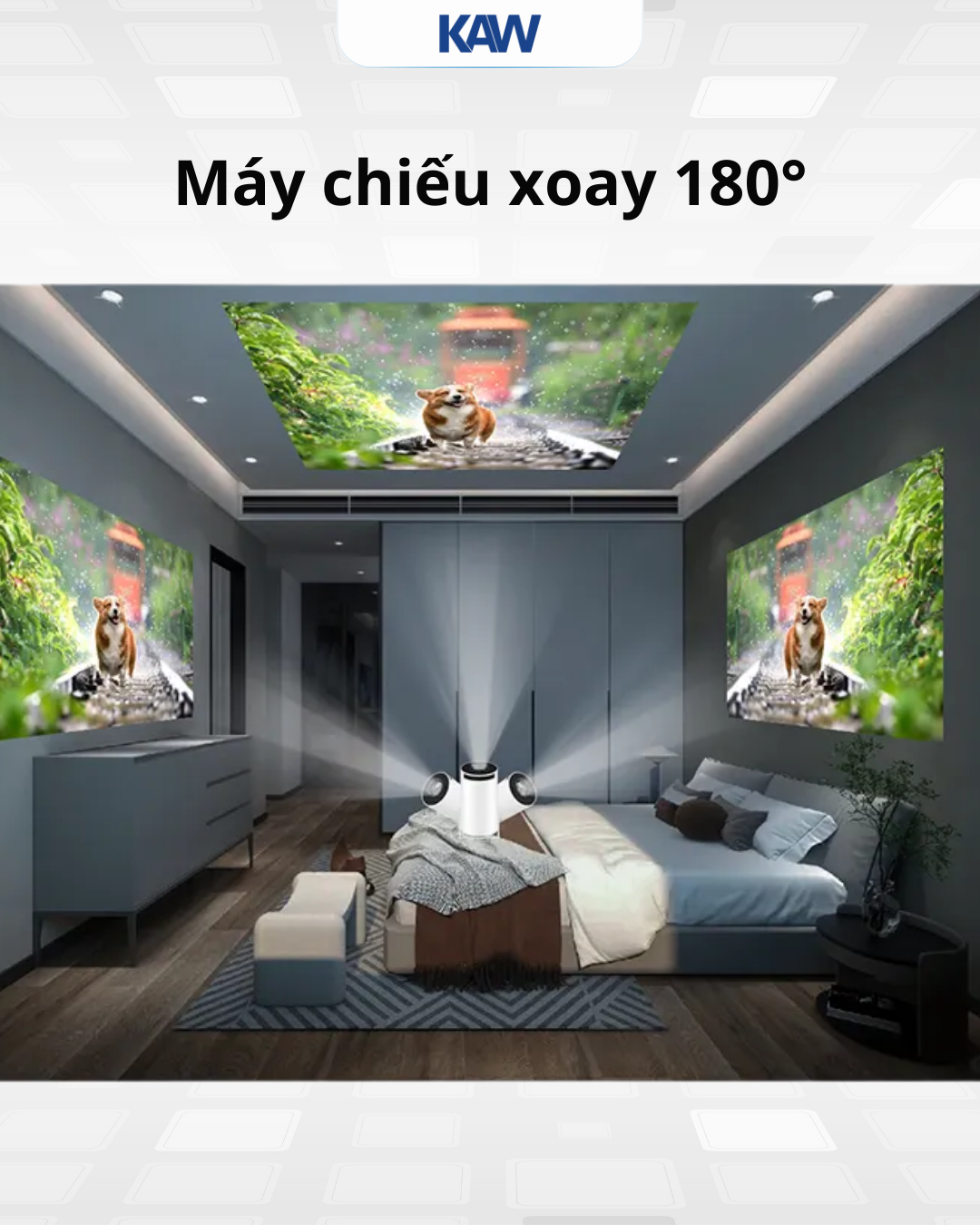 Máy Chiếu Mini KAW MC012 – 720P HD, Android 11, 160 ANSI, Bluetooth 5.0, Góc Chiếu 180°