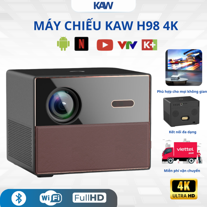 Máy Chiếu KAW H98 4K – 700 Lumens, Auto Focus, Android 9, Kèm Chân Giá, Hỗ Trợ 4K