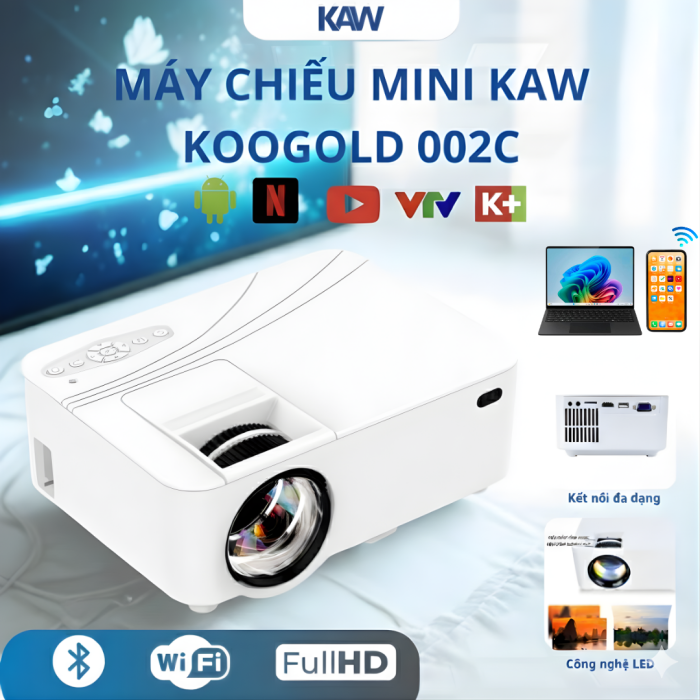 Máy Chiếu Mini KAW Koogold 002C là lựa chọn phù hợp cho gia đình muốn có máy chiếu nhỏ gọn, giá tốt nhưng có đầy đủ tính năng cần thiết: kết nối đa dạng, màn chiếu lớn, độ bền cao và dễ sử dụng. Sản phẩm lý tưởng để xem phim, chơi game, học tập, giảng dạy hay mang theo khi di chuyển.