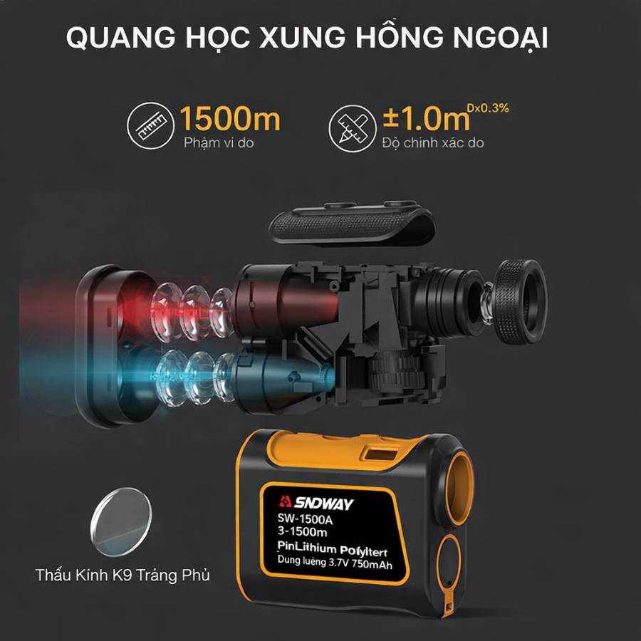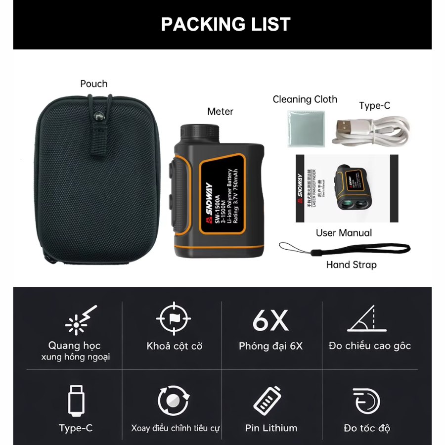 Ống Nhòm Đo Khoảng Cách Laser KAW RF1500 1500m – Máy Đo Laser 6X, Đo Xa Chính Xác, Pin Sạc