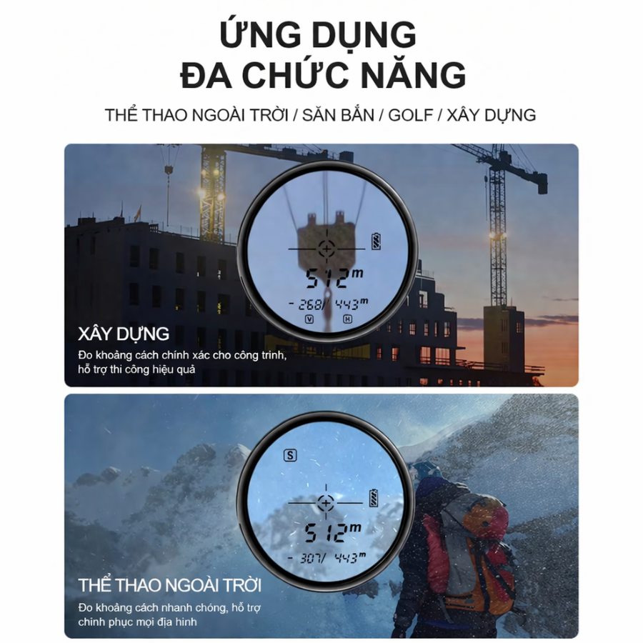 Sản phẩm phù hợp cho các nhu cầu như đo công trình, đo địa hình, chơi golf hoặc các hoạt động ngoài trời cần xác định khoảng cách chính xác trong phạm vi lớn.