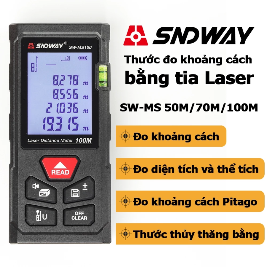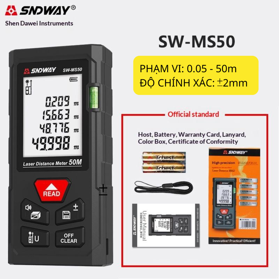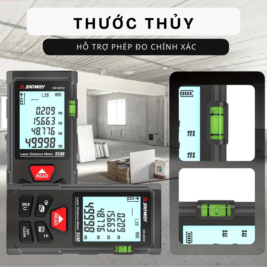 Thước Đo Khoảng Cách Laser SW-MS50 50m – Máy Đo Laser Chính Xác Cao, Đo Diện Tích, Thể Tích
