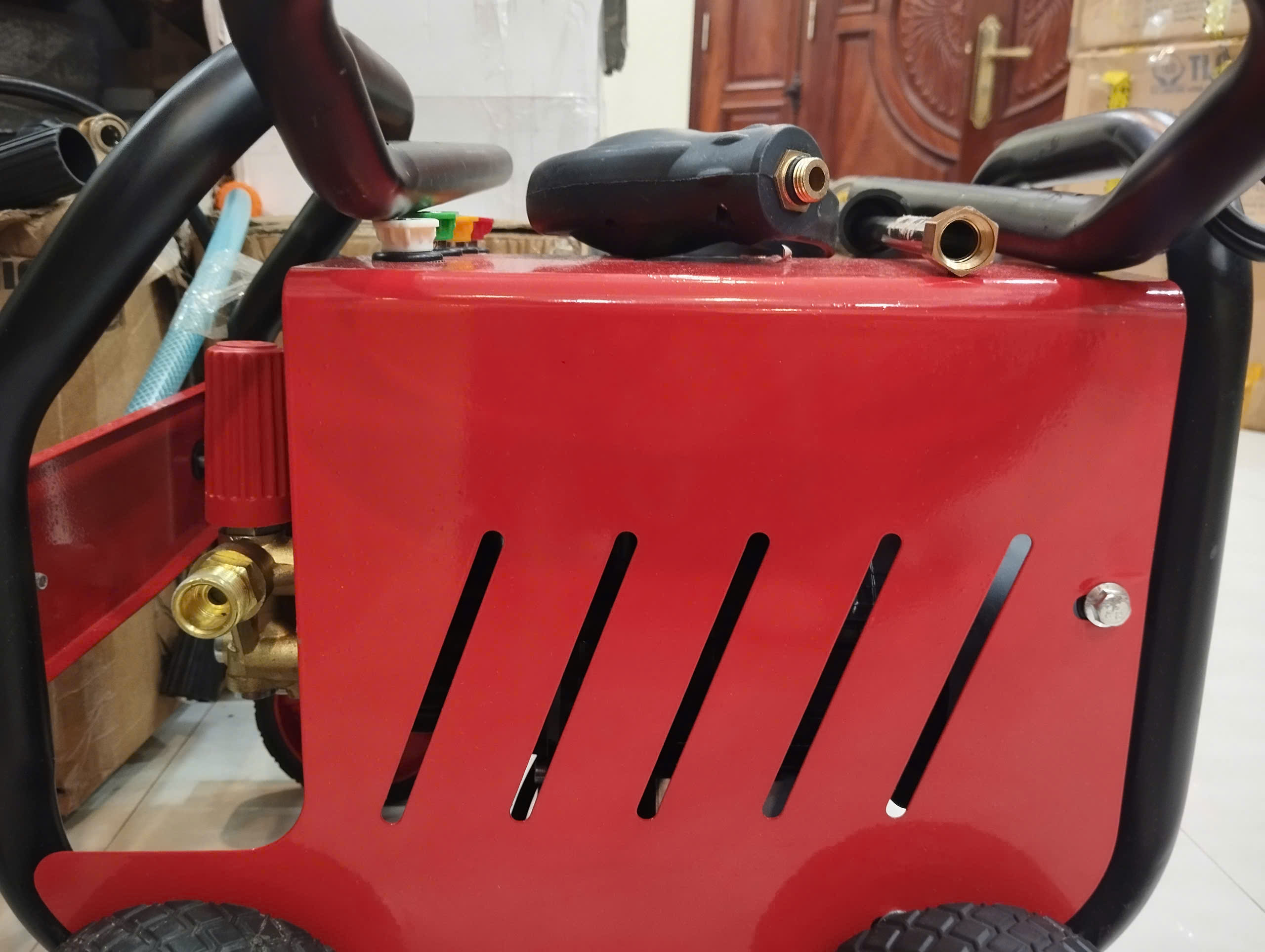 - Phụ kiện đa dạng: Đi kèm với súng phun, dây cao áp, các loại đầu phun để đáp ứng các nhu cầu làm sạch khác nhau.