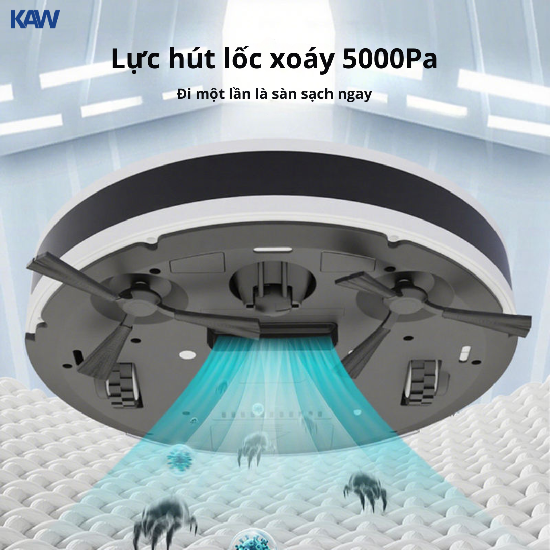 Robot Hút Bụi KAW 247B – Điều Khiển App Smart Life, Lực Hút 4800Pa, Tự Sạc, Lau Hút 2in1