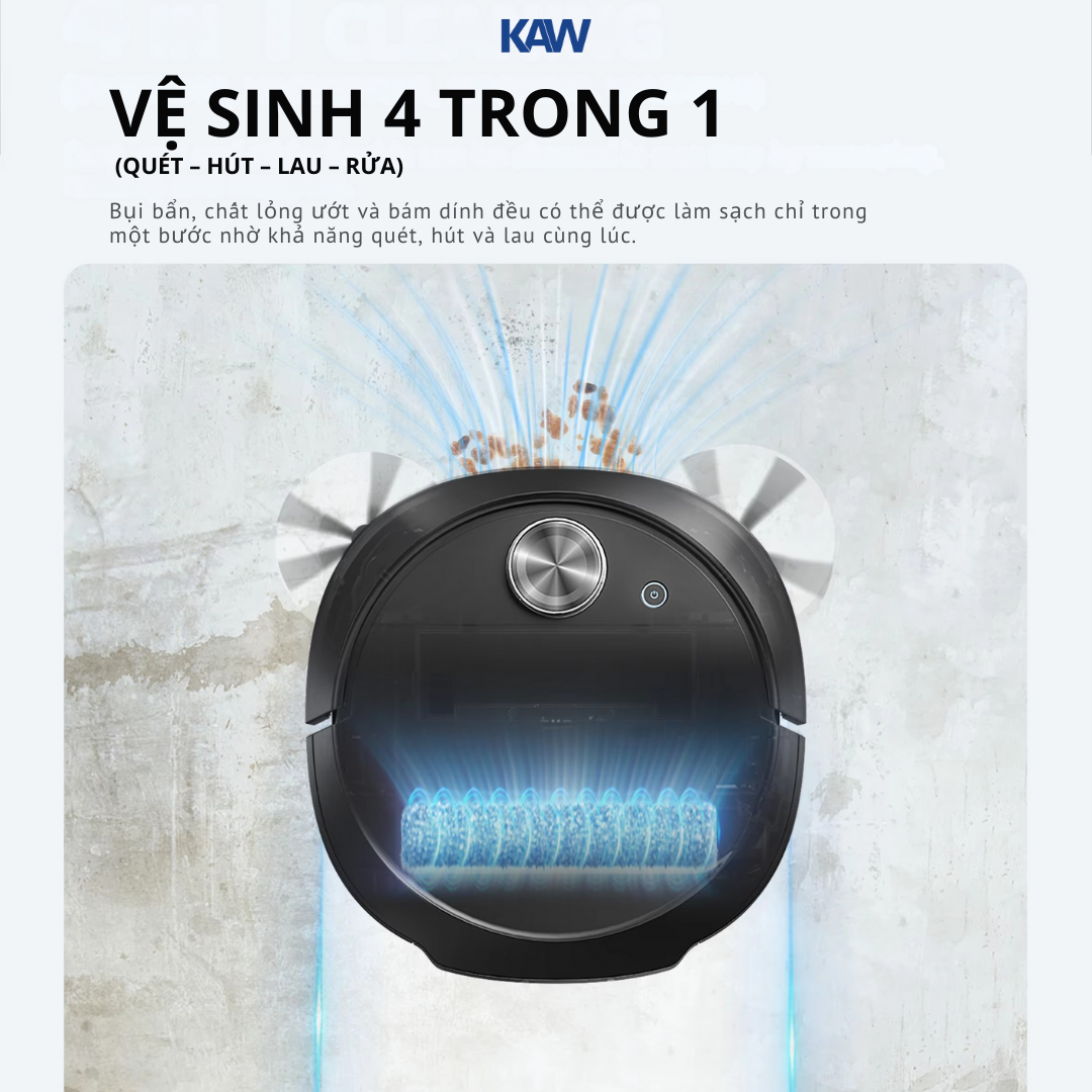 Robot Hút Bụi Lau Nhà KAW 249A - Có Hệ Thống Lọc Nước Thải, Lực Hút 12000Pa, Điều Khiển App