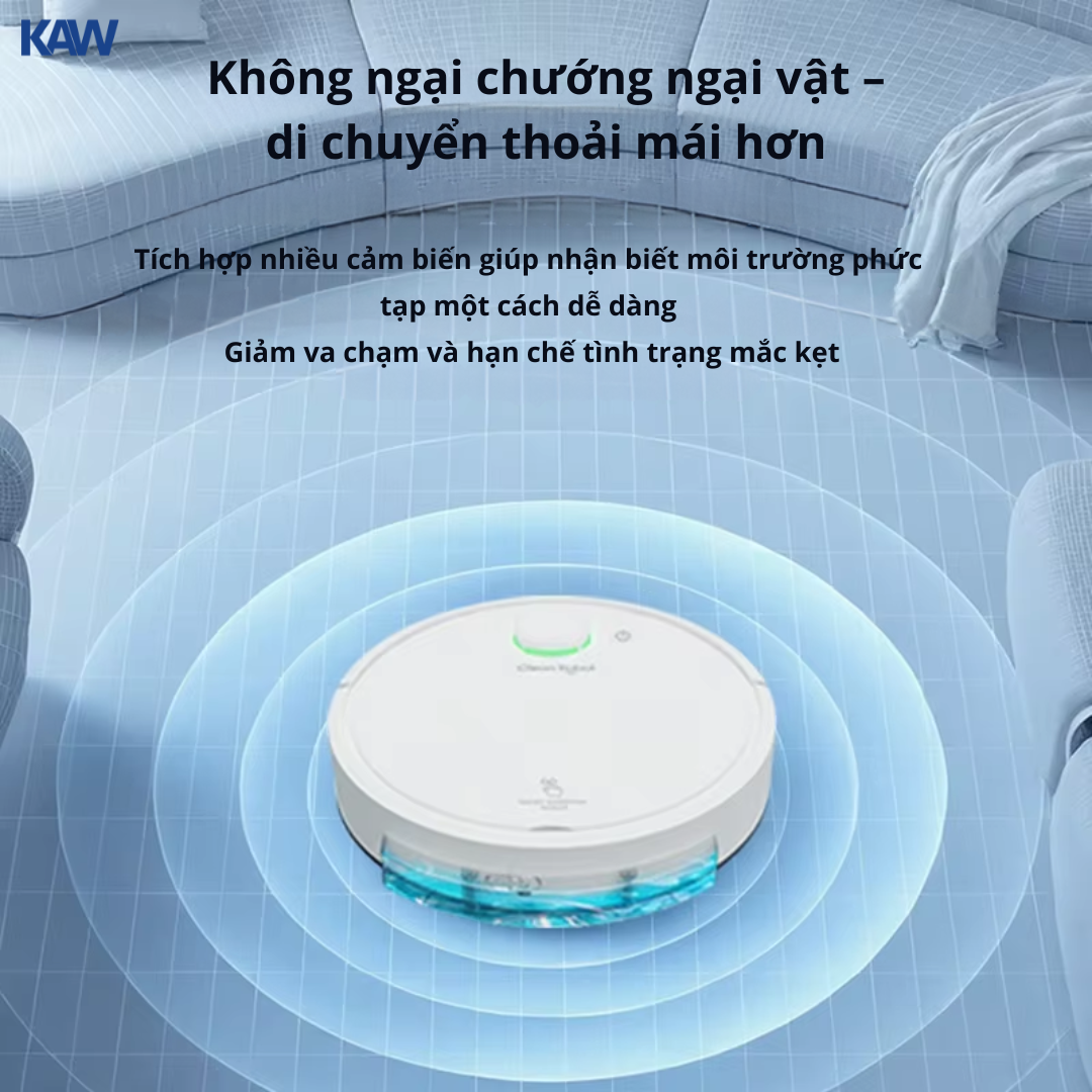 Với khả năng hút và lau đồng thời, robot đảm bảo xử lý được bụi bẩn nhẹ, tóc và các vết bẩn hàng ngày. KAW 249C có thiết kế gọn nhẹ, phù hợp với các căn hộ nhỏ, phòng đơn hoặc không gian sử dụng ít bụi.
