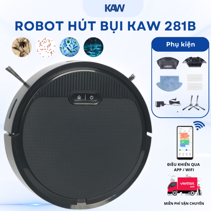 Robot Hút Bụi Lau Nhà KAW 281B – Hút & Lau Thông Minh – Điều Khiển App