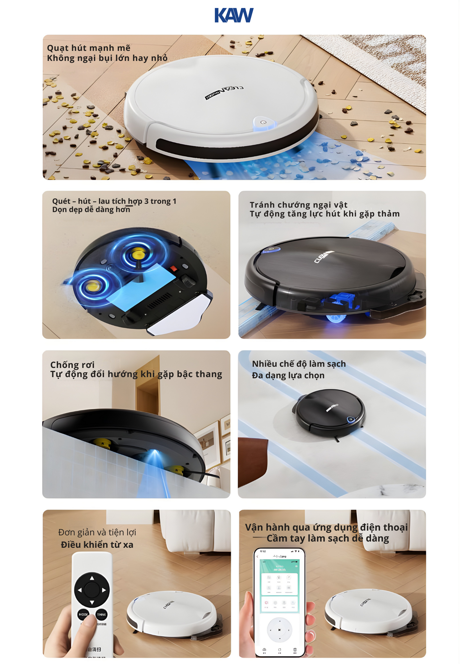 về Robot Hút Bụi Thông Minh KAW 245D – Lực Hút 2000–2999Pa, App Control, Chống Rơi, 6 Chế ĐộTVQuản trị viênQuản trị viên