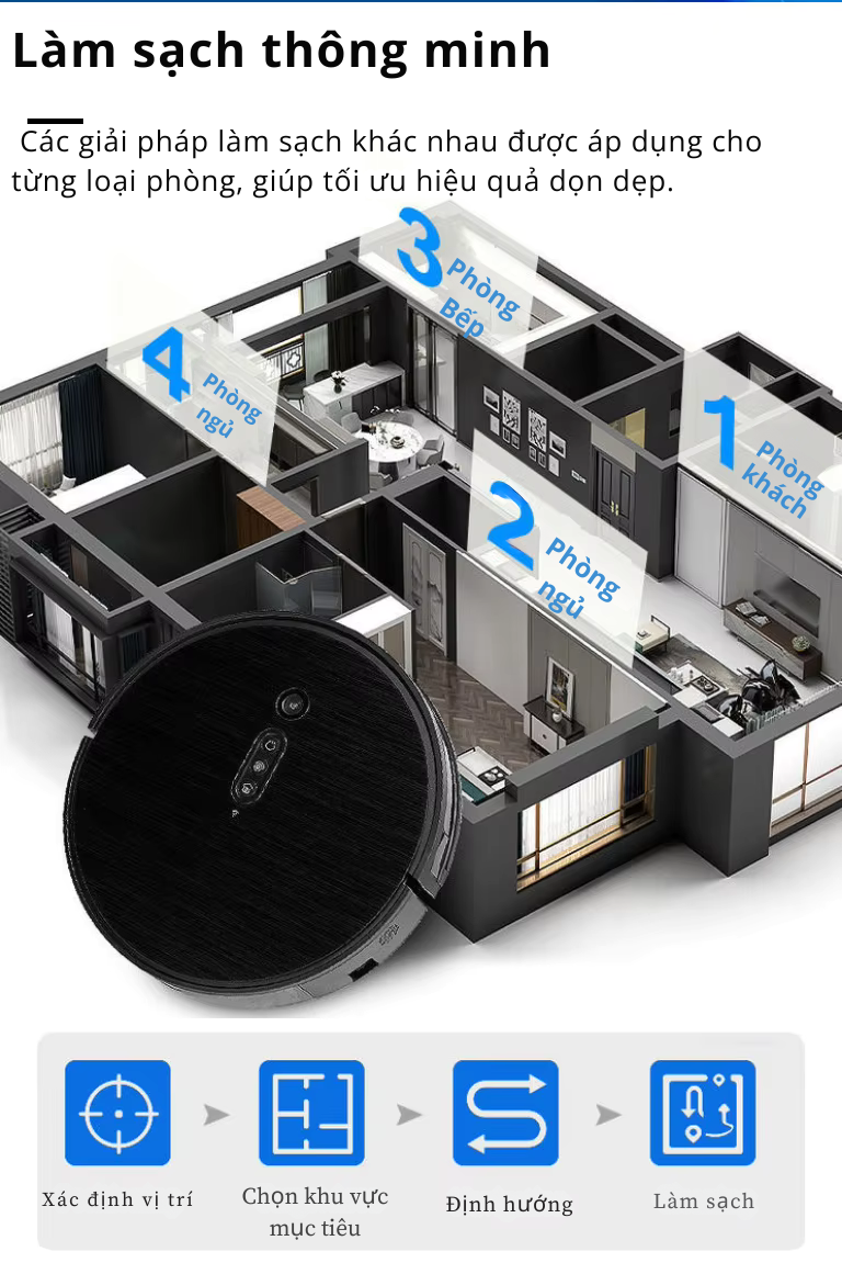 Công nghệ thông minh giúp tối ưu hóa đường đi, làm sạch hiệu quả mọi ngóc ngách.