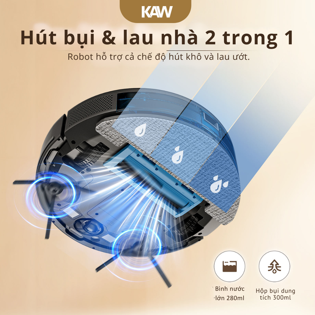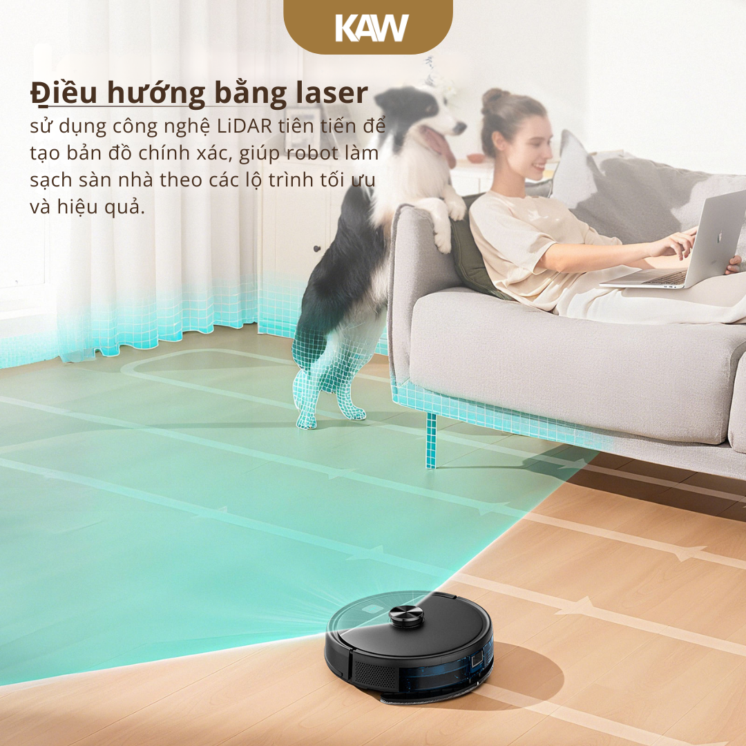 Robot hút bụi tự đổ rác KAW 245A – Lực hút 5000Pa, điều hướng Laser LDS, điều khiển App