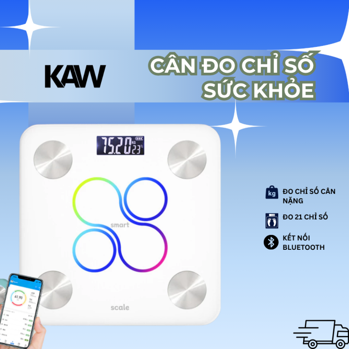 Cân Điện Tử KAW K21, Kết Nối App - Theo Dõi Mỡ & BMI